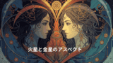 セスキスクエア(135度)は、自分の変容への志向が外側の環境と合わないことが繰り返しある配置です。「こんな深いところまで行く必要はない」という周りの感覚と、「いや、ここを見なければならない」という内側の衝動の摩擦。この経験が、独自の深さを育てます。
